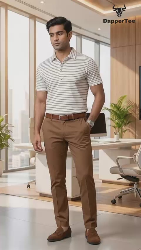 Premium Stripe Jaquard Light Khaki DapperTee Polo For Office