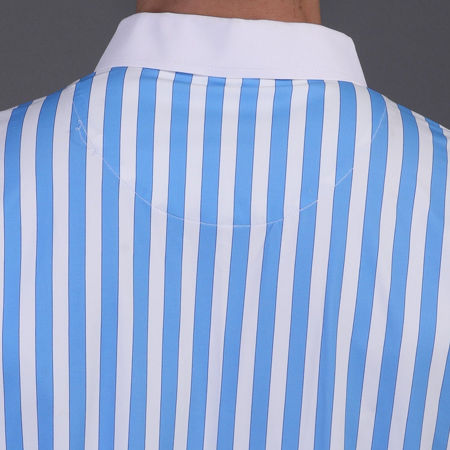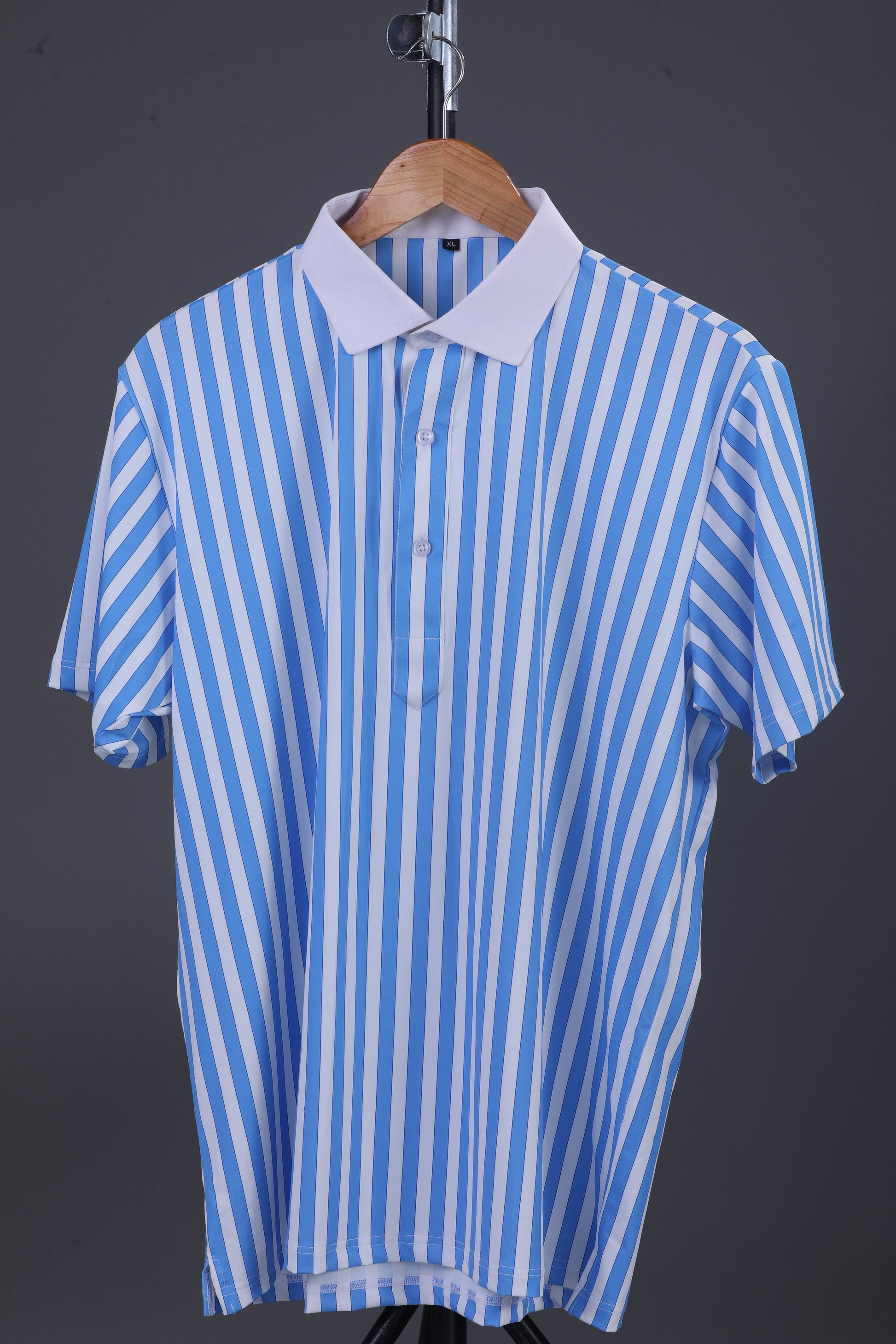 Luxe Blue Stripes Print With White Business Collar Polo