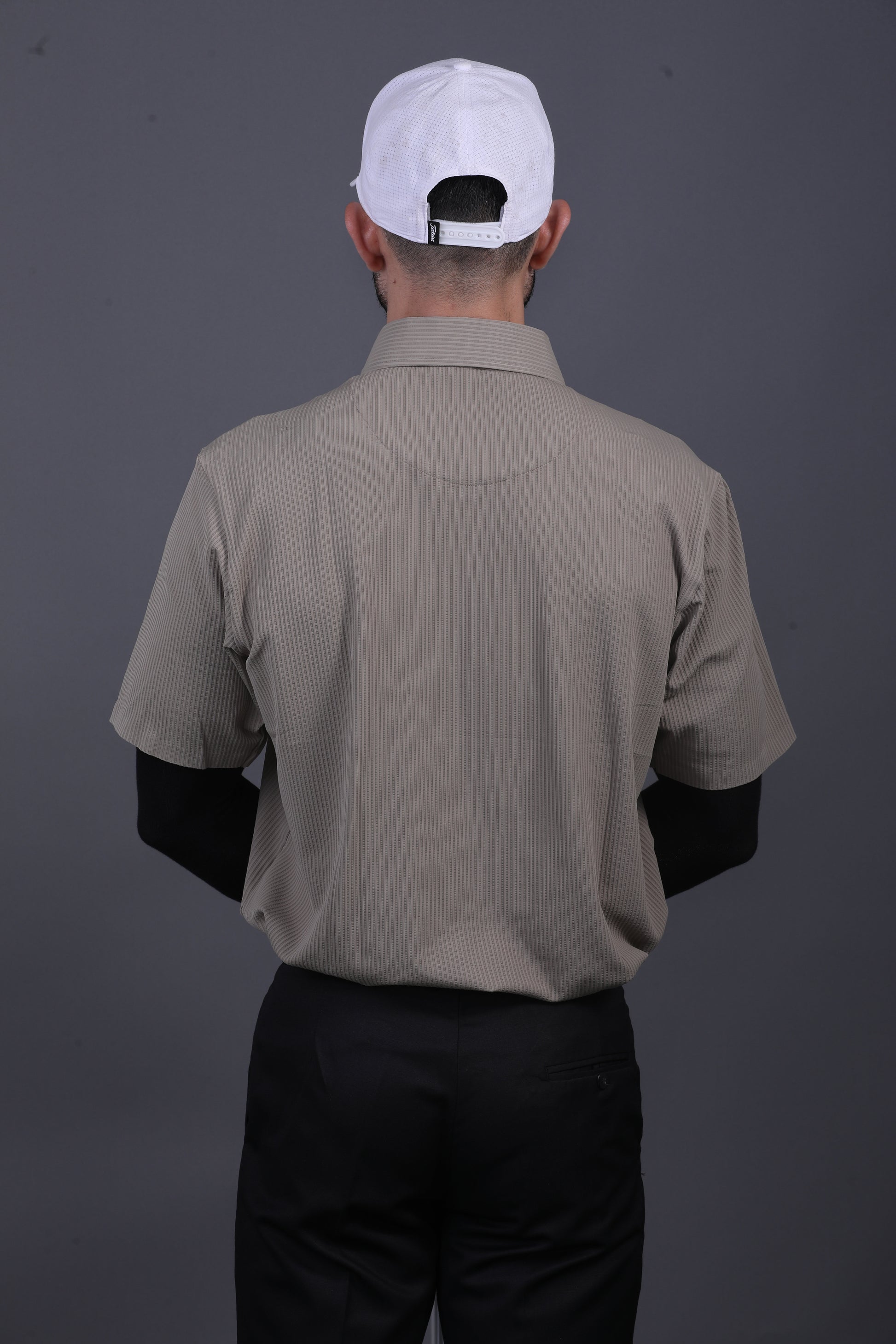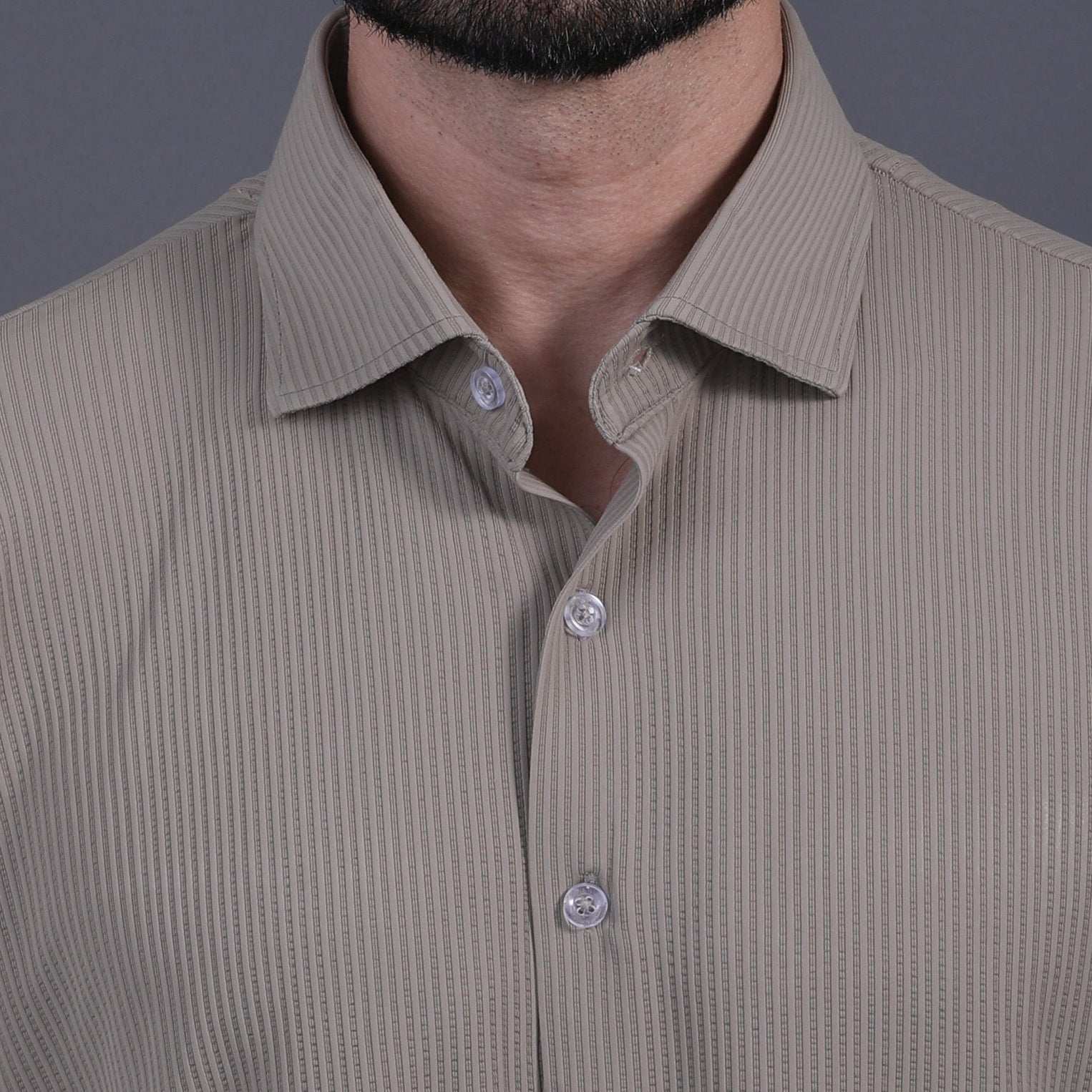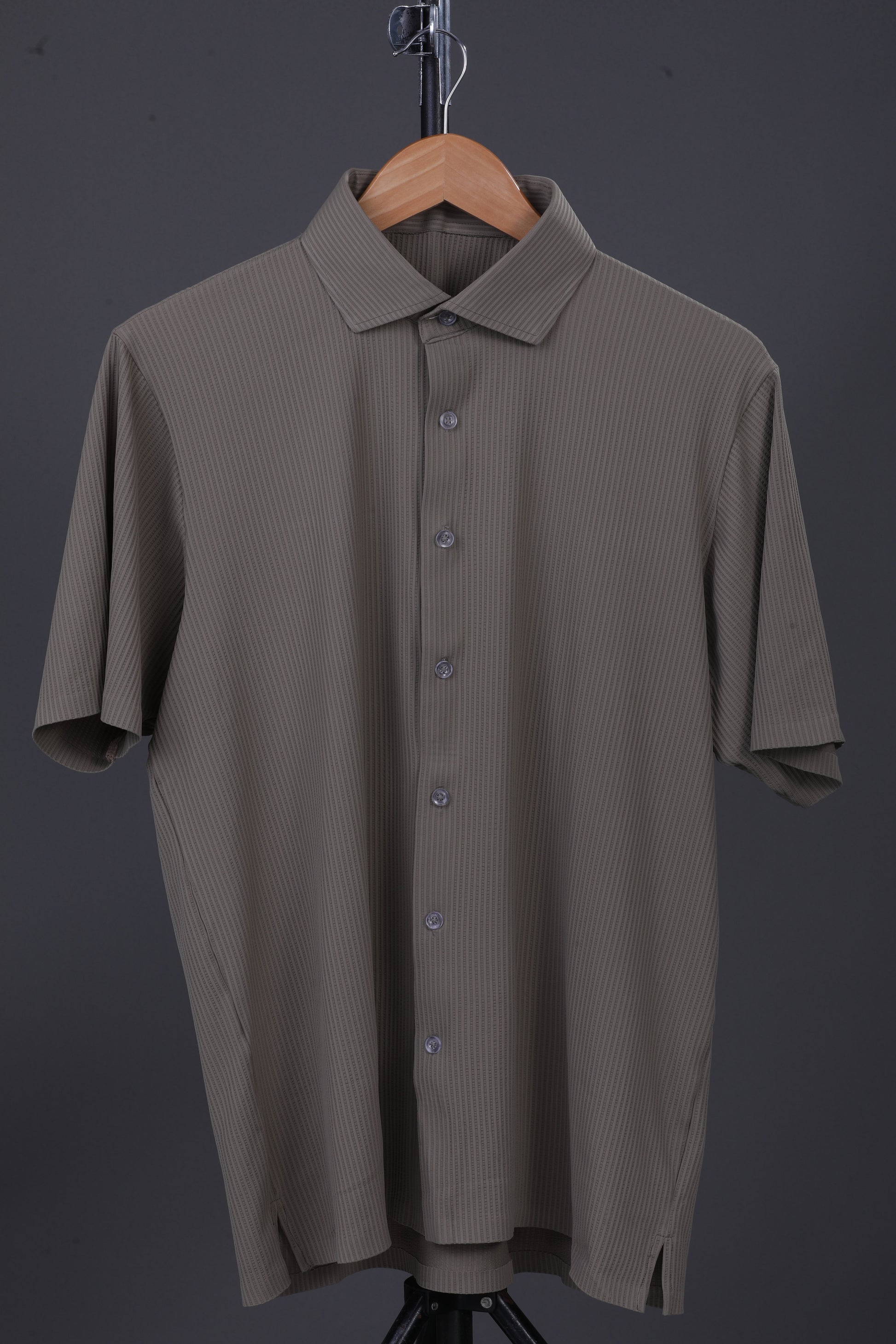 Premium Stripe Jaquard Khaki DapperTee Open Shirt Polo For Office