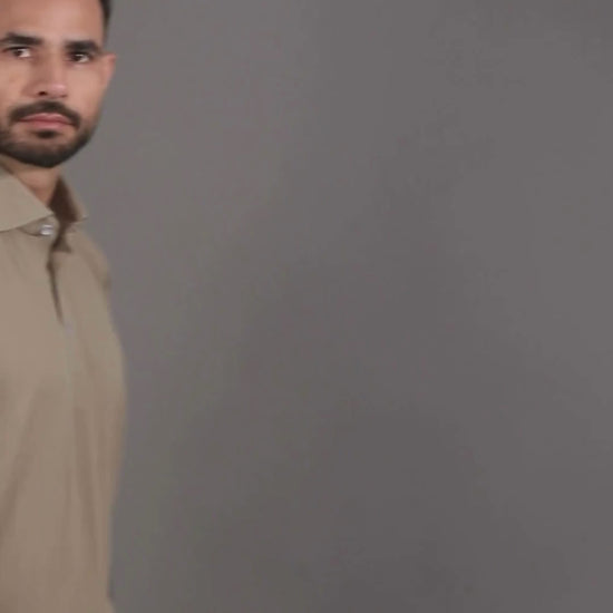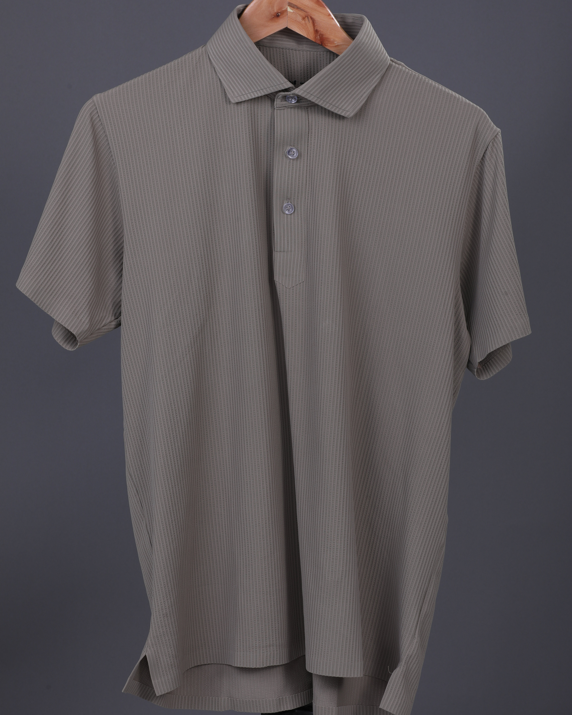 Premium Stripe Jaquard Light Khaki DapperTee Polo For Office