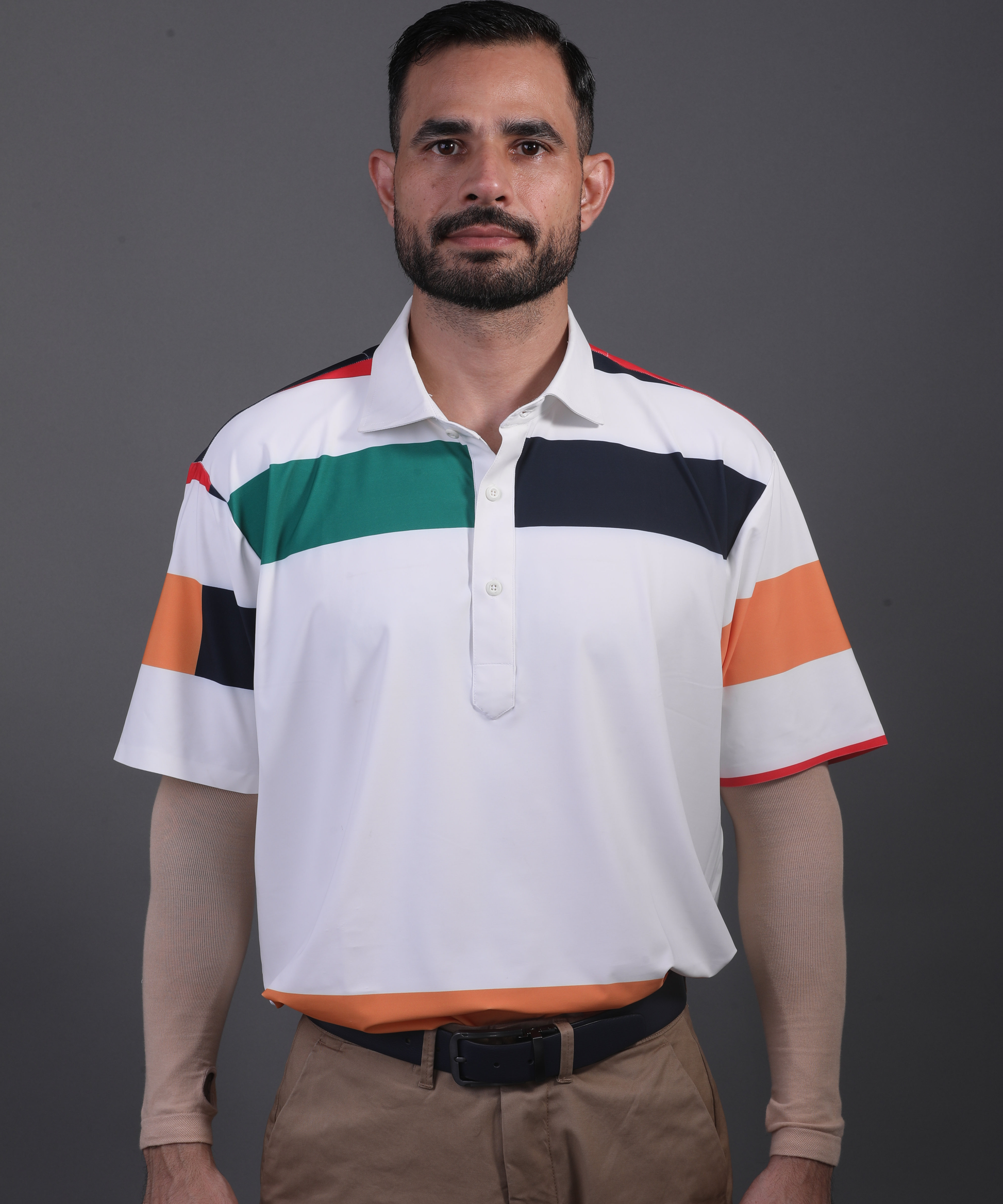 Crafted from a proprietary blend of polyester, nylon, spandex, and rayon, ensuring both breathability and a premium hand-feel for all-day comfort.