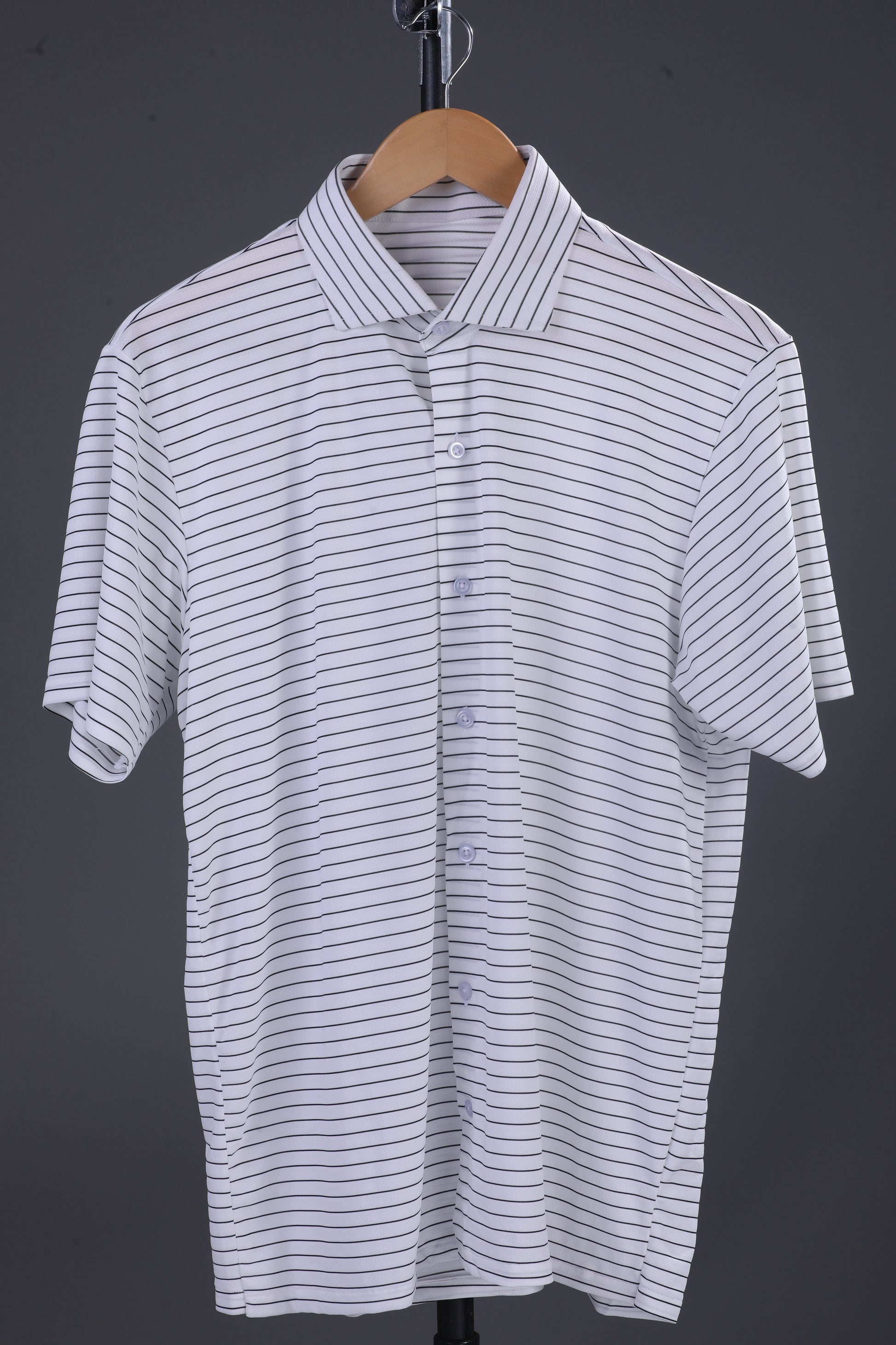 Regal White Black Stripe Open Shirt Polo